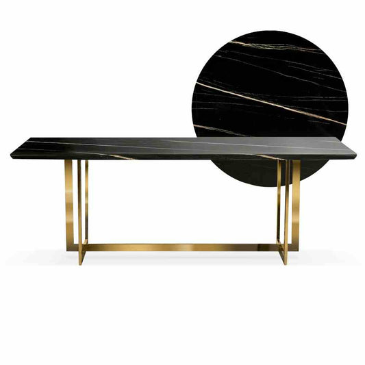 MARBLE 220x100 melna marmora / zelta kāju galds
